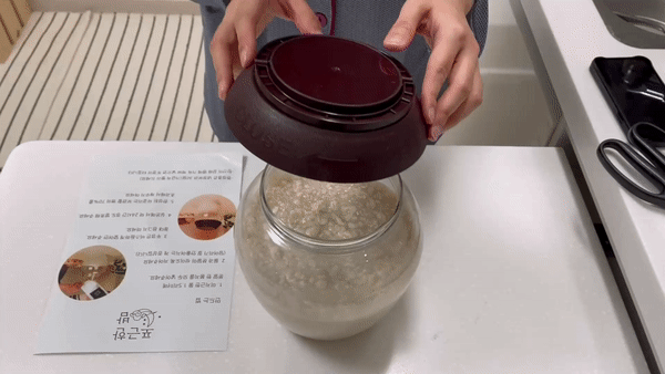 1 분말이 덩어리지는 것은 자연스러운 현상이며 발효 과정 중 알아서 풀어져요.