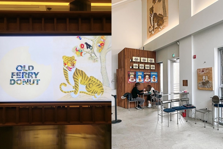 그중 미국을 대표하는 디저트인 도넛에 한국적인 요소를 더한 도넛 매장이 있습니다. 바로 서울 용산구 한남동에 위치한 올드페리도넛 매장인데요. 올드페리도넛 한남동 매장은 한국 전통 민화를 곳곳에서 만나볼 수 있는데요. 매장 입구에 전시된 작품부터 굿즈, 그리고 도넛을 담는 포장 박스까지 민화를 활용해 동양의 아름다움 속에서 서양의 맛을 구현했습니다.