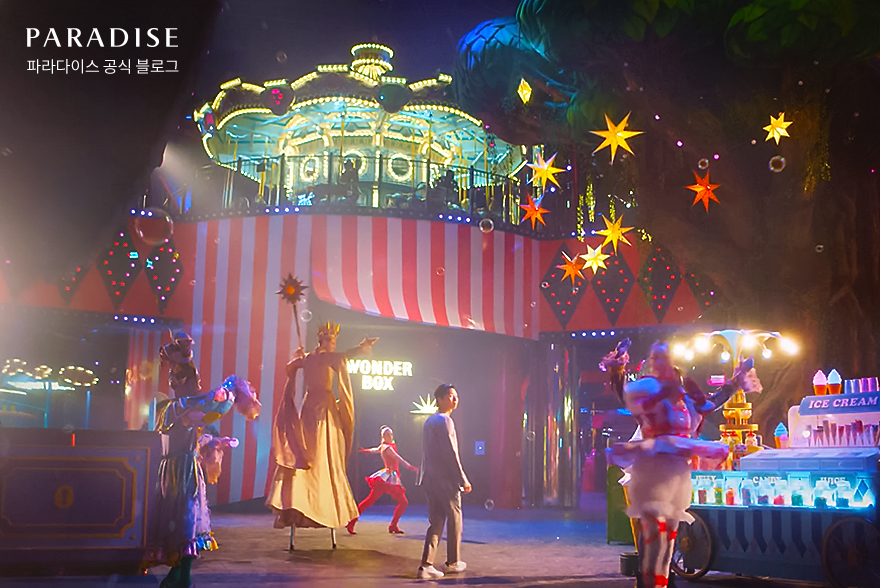 다음으로 박서준 배우가 여성을 찾아 나선 장소는 파라다이스시티의 가족형 실내 테마파크 ‘원더박스’입니다. 밤의 유원지를 컨셉으로 한 원더박스에서는 화려한 퍼포먼스가 펼쳐지고 있는데요. 박서준 배우와 함께 원더박스의 다이나믹한 어트랙션과 환상적인 퍼포먼스를 구경해 보세요.