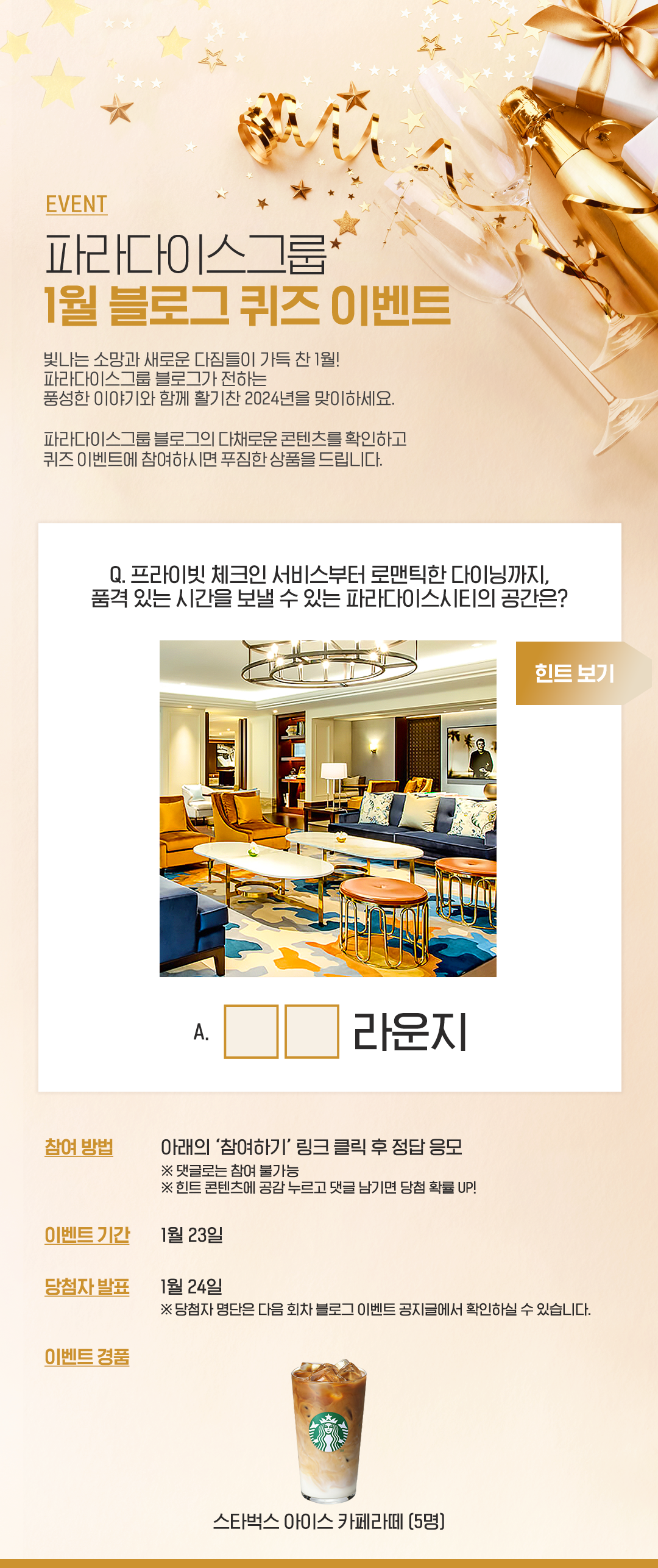 | 파라다이스그룹 1월 블로그 이벤트 (1회차) (61) | 2024.01.22 |