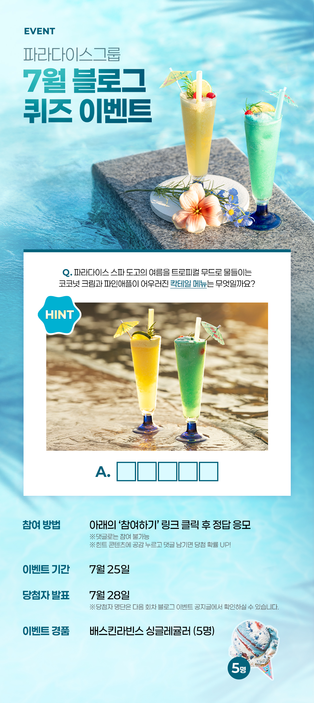 | 파라다이스그룹 7월 블로그 이벤트 (2회차) & 1회차 당첨자 발표 (4) | 2025.07.22 |
