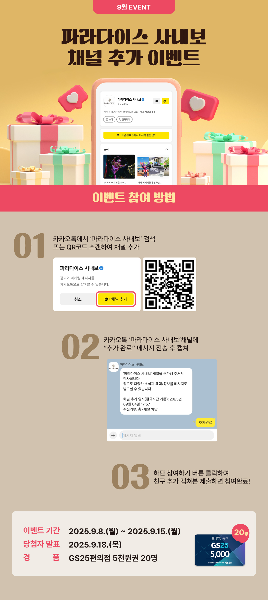 파라다이스 사내보 채널 친구 추가 이벤트
