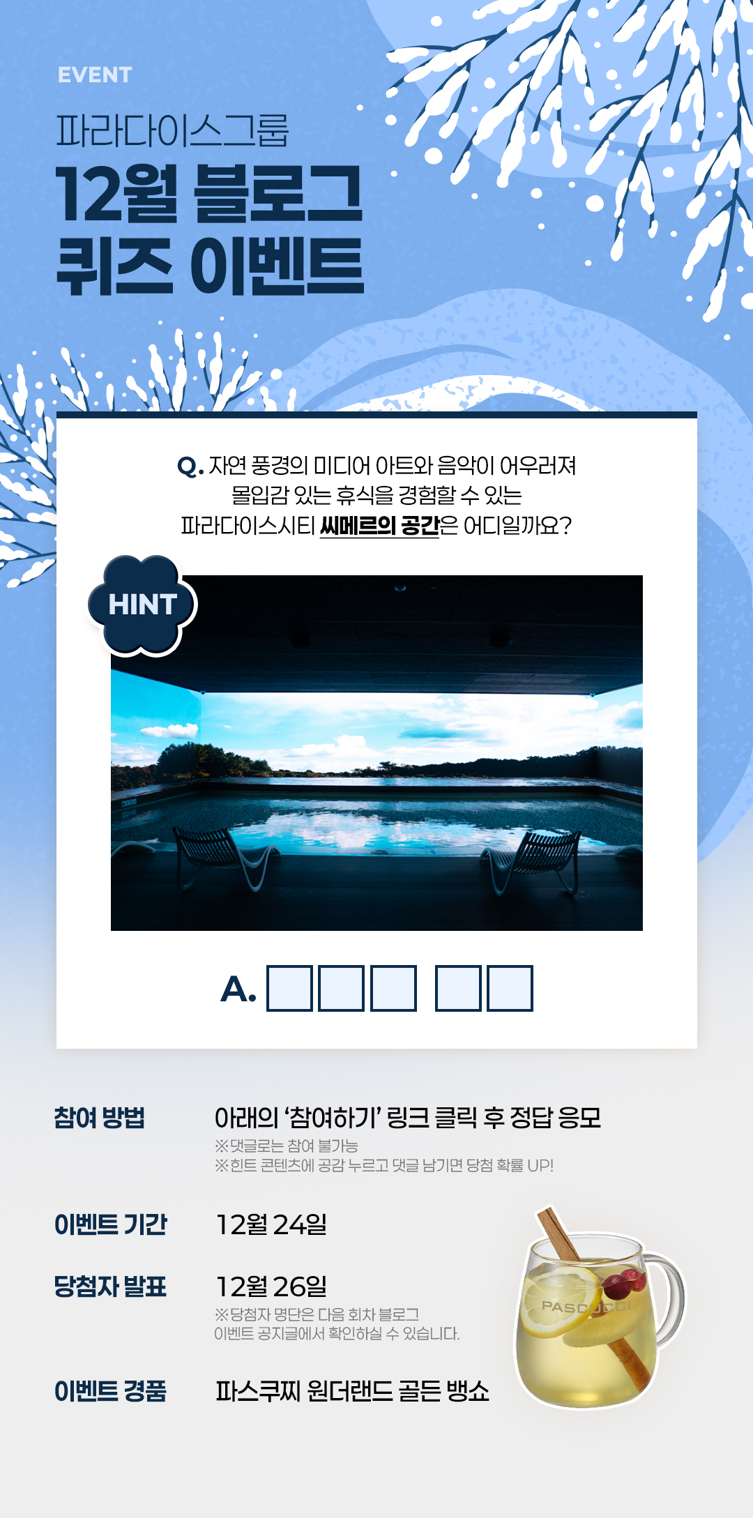 | 파라다이스그룹 12월 블로그 이벤트 (1회차) (6) | 2025.12.22 |